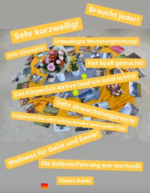 Ich biete individuell zugeschnittene, kurzweilige und dennoch in die Tiefe gehende Formate zur Förderung der Mitarbeitergesundheit, Resilienzstärkung und Persönlichkeitsentwicklung an, z.B. „Gemeinsam achtsam und wertschätzend“, einen Selbsterfahrungsworkshop für mehr Leichtigkeit und Wohlbefinden im Berufsalltag, in dem neben der Stärkung als Team das Bewusstsein für Achtsamkeit, (Selbst-)Wertschätzung, Selbstfürsorge und Selbstverantwortung geschärft wird. Genauere Infos auf Anfrage.