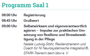 Aktuell arbeite ich im Rahmen des vom Bayerischen Staatsministerium für Gesundheit, Pflege und Prävention geförderten Projekts "STARK in der Intensivpflege" an der Entwicklung von Resilienztrainingsmodulen für Pflegekräfte auf bayerischen Intensivstationen mit. Im September habe ich beim Pflegetag der Kliniken Nordoberpfalz den Auftaktvortrag gehalten. Wie die meisten meiner Angebote zur Resilienzförderung und Persönlichkeitsstärkung ist dieser interaktive Vortrag auf Anfrage entstanden. Gerne entwickle ich auch für Sie und Ihre Firma/Einrichtung ein passgenaues, individuelles Angebot! Angebotsanfrage |
