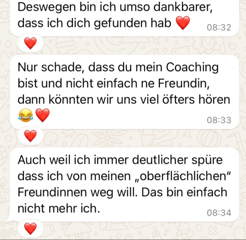 Ich habe heute allein mit meiner Entscheidung, die ich FÜR MICH getroffen habe auf einmal wieder so viel Energie bekommen … und dann sogar an dem Meeting per Videokonferenz teilgenommen … weil ich es wollte, nicht weil ich musste … und auch die Arbeit, die ich dann von zu Hause aus erledigt habe, habe ich überwiegend mit Freude und Leichtigkeit gemacht … 🤗🪶✨