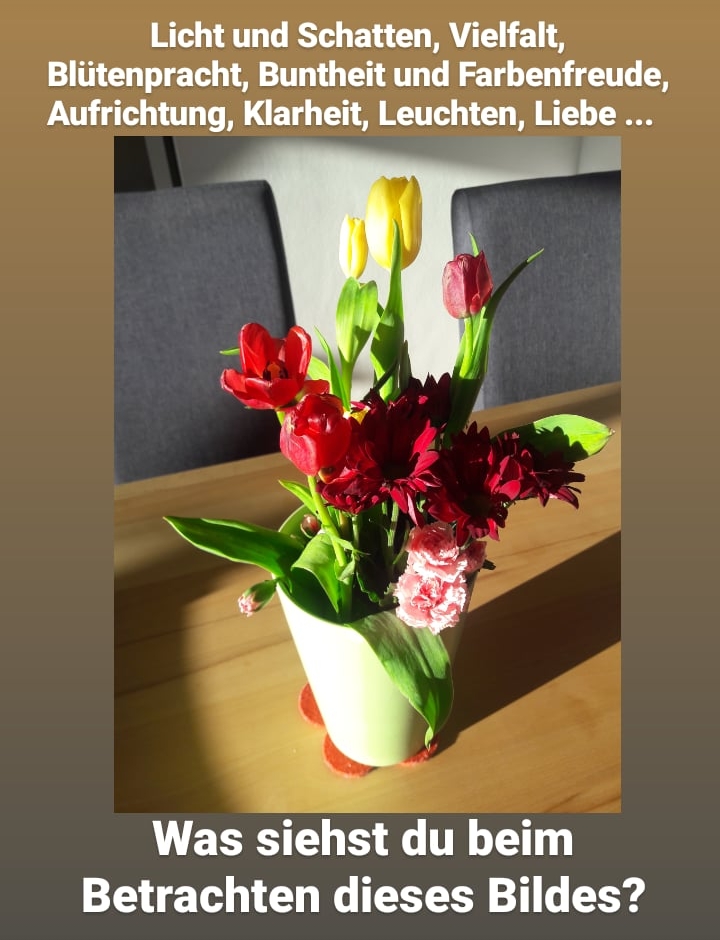 Diese Seite pflege ich derzeit nicht wirklich regelmäßig. Für aktuelle Beiträge und Impulse lade ich dich ein, mir auf Instagram oder Facebook oder in meiner WhatsApp-Gruppe "In Berührung mit dem Leben" zu folgen!